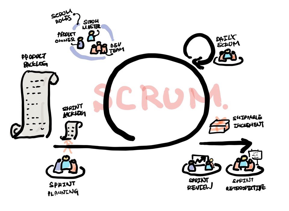 회의시간에 집중력 저하를 막지 못하고 패드를 끄적이다가 스크럼 프레임워크를 그리게 되었습니다. 그림도 아깝거 오랜만에 정리도 할겸하여 스크럼을 소개해드려 봅니다.