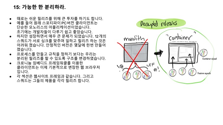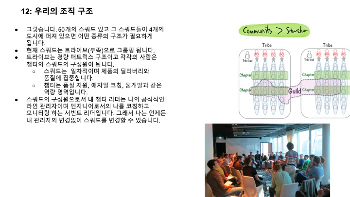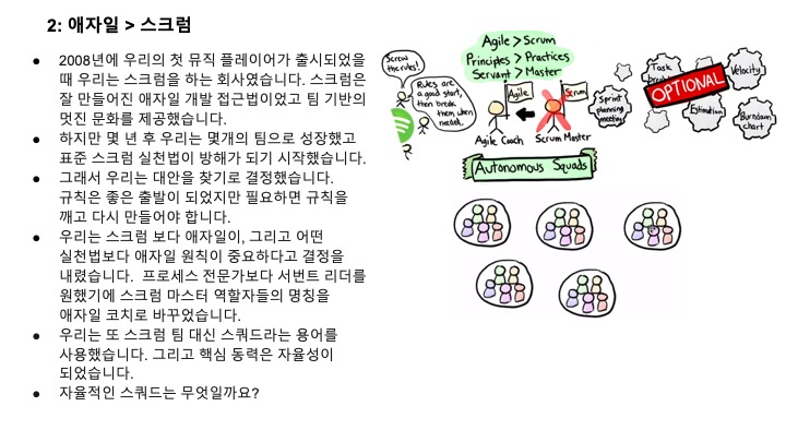 이 영상은 Henrik Kniberg 님이 Spotify의 조직문화를 설명하기 위해 만든 영상입니다.
