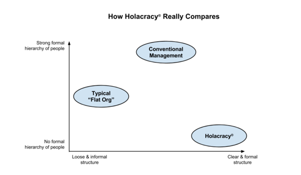 홀라크라시는 사람사이에 계층은 존재 하지 않지만 명확하고 형식적인 구조가 존재합니다. 그리고 형식적인 구조안에서 각각의 사람들은 막강한 자율성과 결정권을 가지고 행사하게 됩니다.