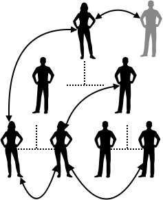 형식구조가 존재하지만 사람들은 저마다의 이해관계 또는 동료들과의 친밀도, 우리나라에서 라인이라고 표현하는 문화 속에서 실제로 다르게 동작하는 구조를 가질수 있습니다.